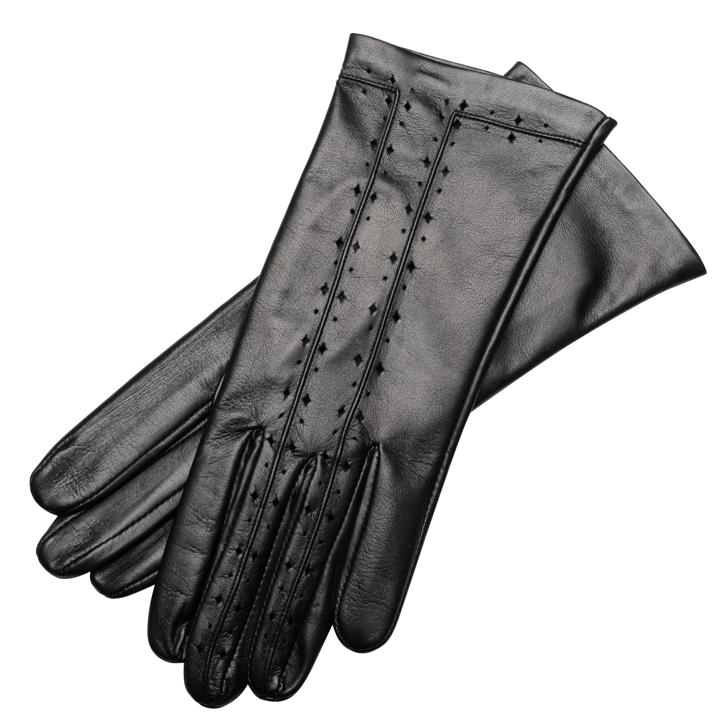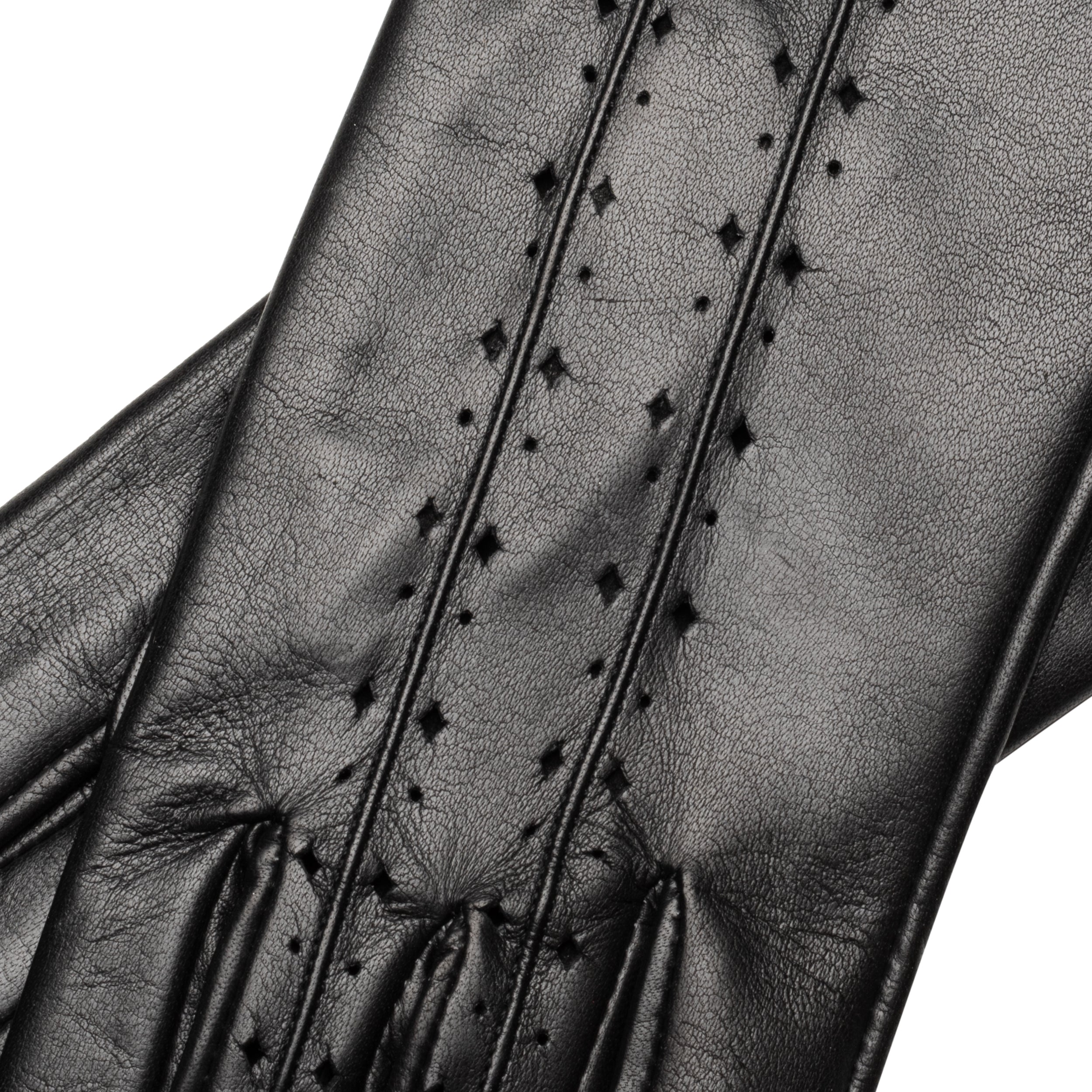 Unique handcrafted ladies leather gloves made from the finest Italian Nappa leather. Intriguing detailing makes these gloves elegant and ladylike. These gloves are unlined for breathability and lightness.