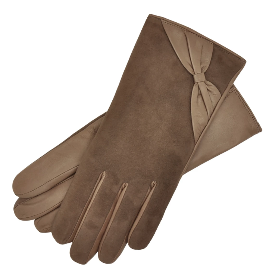 Express your femininity with a pair beautiful suede leather gloves. Handmade by our leather artisans in Pecs, Hungary. We use buttery soft Italian nappa leather and line it with 100% cashmere for added warmth. The decorative leather bow is a lovely detail, which makes this pair of gloves stand out.