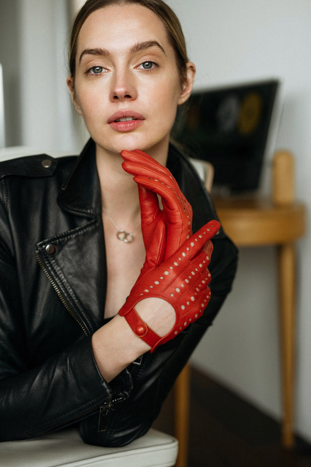 Rimini Women's Red Leather Driving Gloves