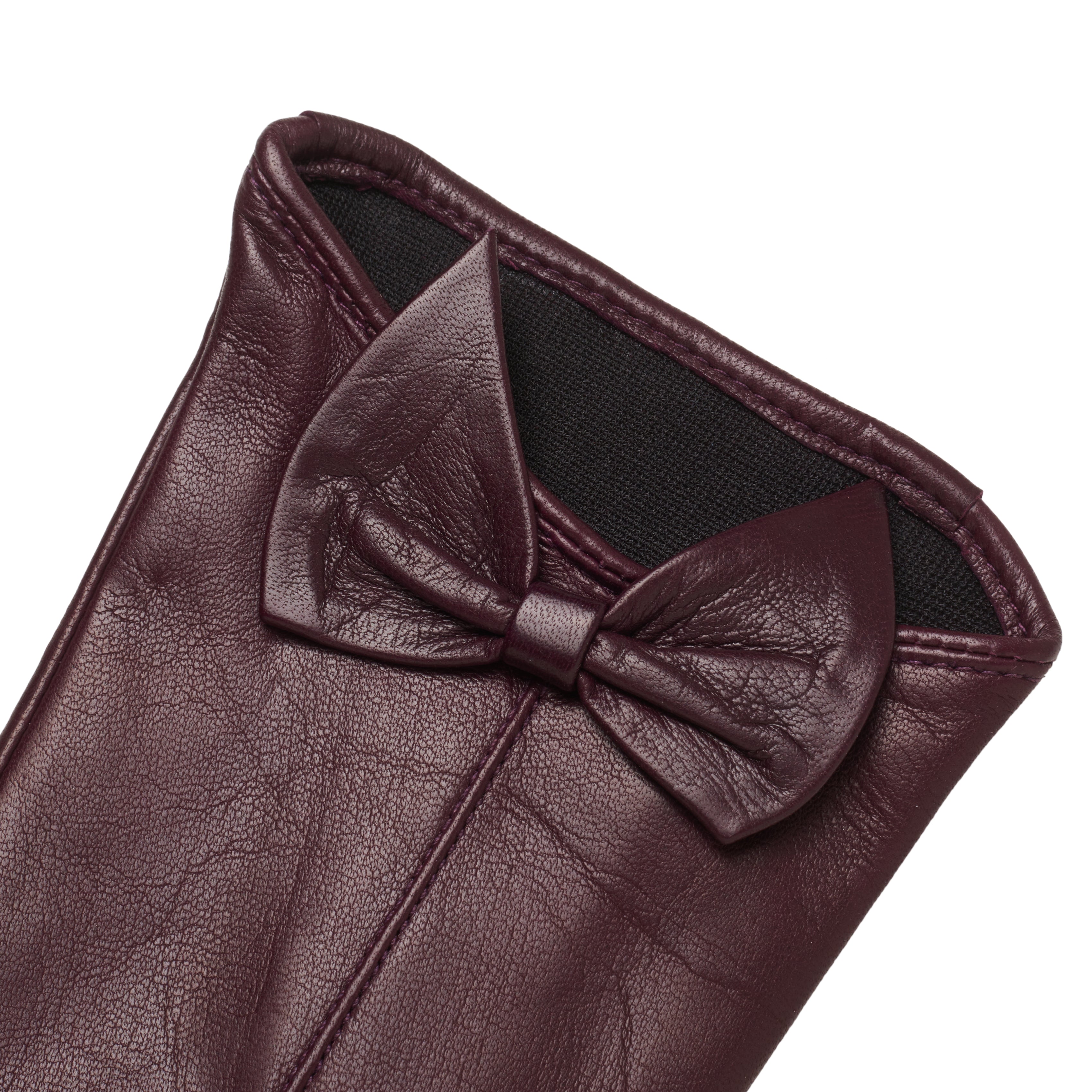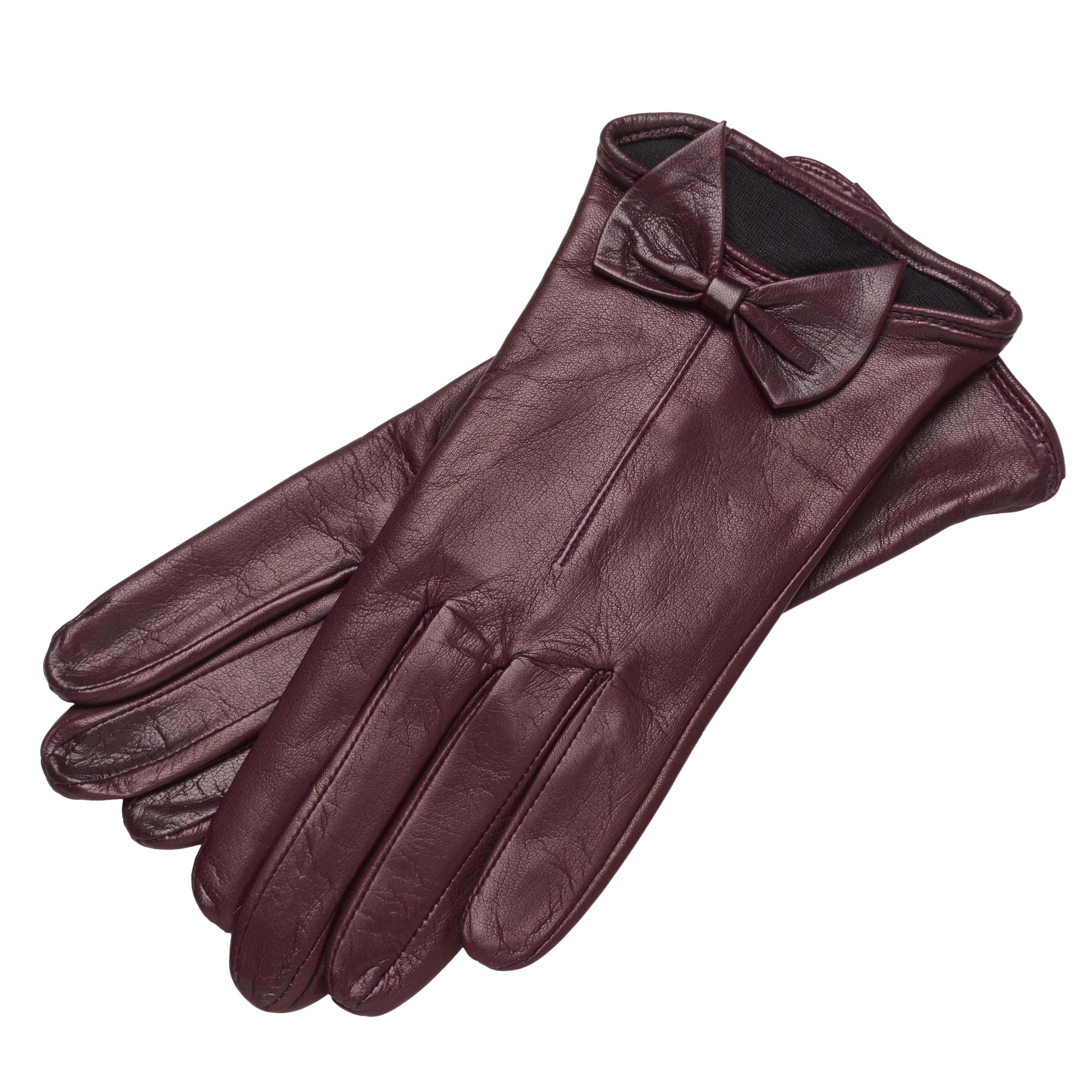 Made out of buttery soft Italian Nappa leather, lined with 100% silk for a luxurious feel. The lovely bow decoration puts the icing on the cake.