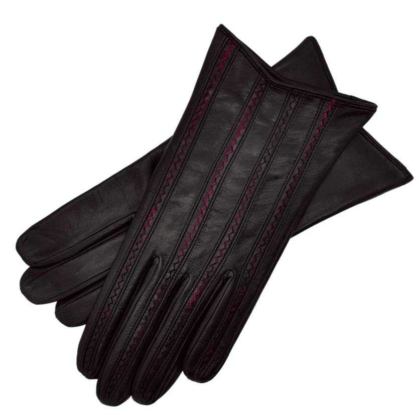 Pavia Women's black with pink leather gloves