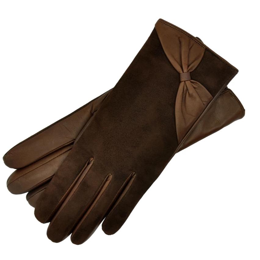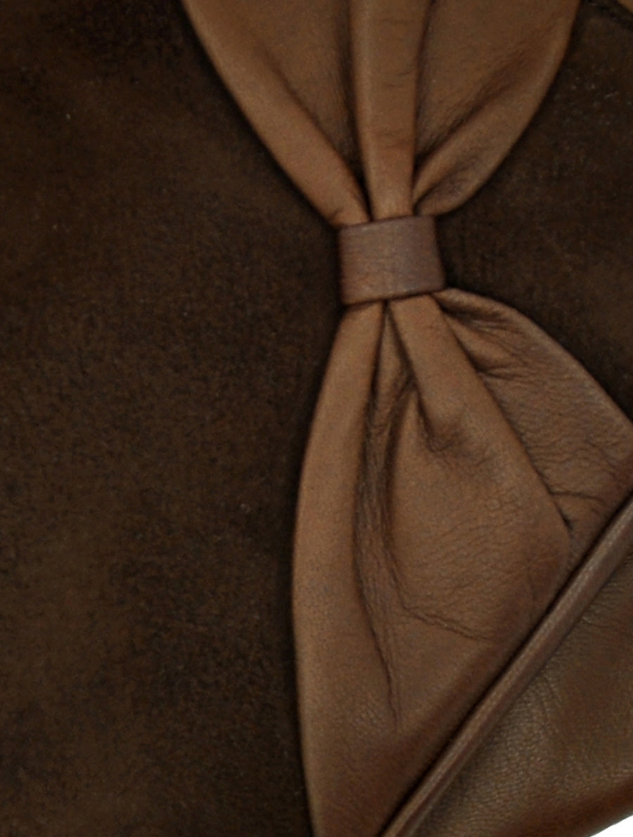 Express your femininity with a pair of beautiful suede leather gloves. Handmade by our leather artisans in Pecs, Hungary. We use buttery-soft Italian Nappa leather and line it with 100% cashmere for added warmth. The decorative leather bow is a lovely detail, which makes this pair of gloves stand out.